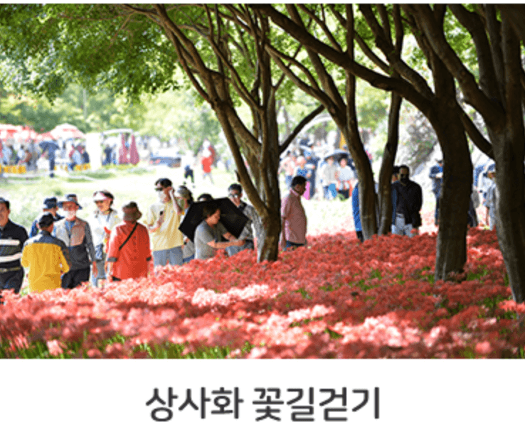 전국 9월 축제 가볼만한 곳 BEST5 중에서 다섯번째는 제23회 영광 불갑산 상사화 축제입니다. 축제기간은 9.15~9.24일까지 10일간 진행을 합니다.